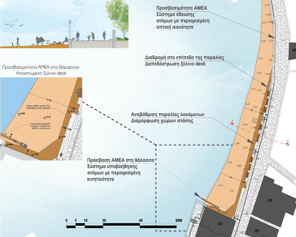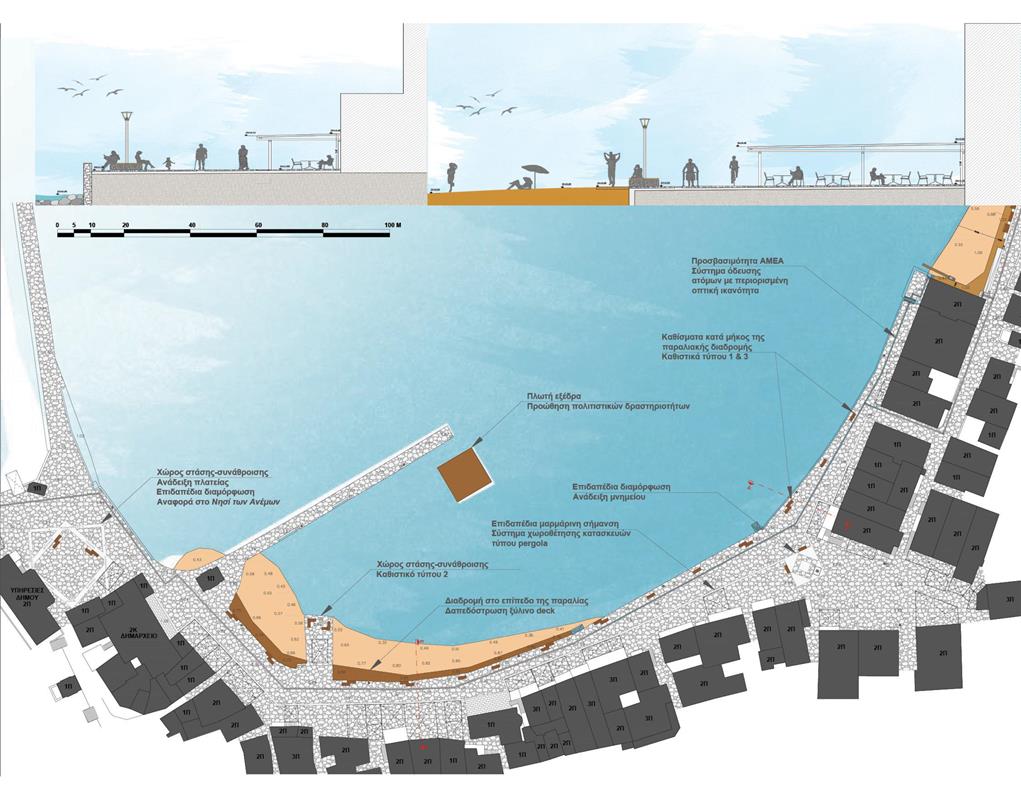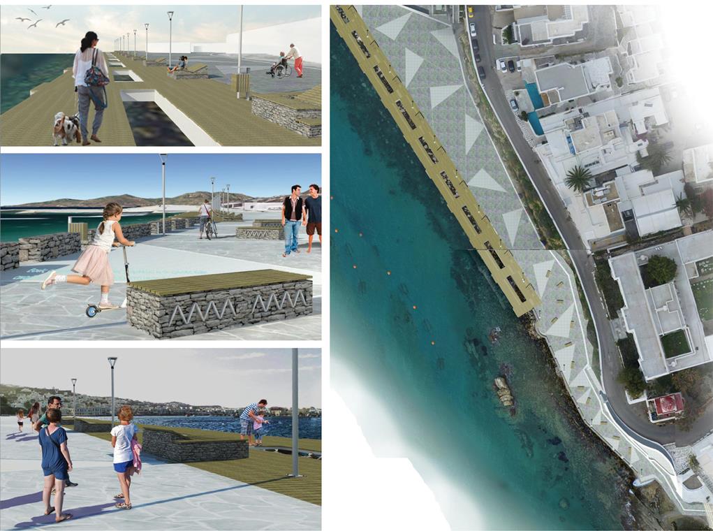Η μελέτη επικεντρώθηκε στην αισθητική και ποιοτική αναβάθμιση της χερσαίας ζώνης του Λιμένα Μυκόνου, στη λογική της βιοκλιματικής ανάπλασης και της ενίσχυσης της βιώσιμης αστικής κινητικότητας. Οι παρεμβάσεις αφορούσαν την αποκατάσταση της υφιστάμενης πλακόστρωσης, με σεβασμό στα υφιστάμενα ποιοτικά και αισθητικά χαρακτηριστικά του μετώπου, την αποκατάσταση και ενίσχυση του αστικού εξοπλισμού, την δημιουργία άνετων χώρων στάσης και σκίασης, την προβολή της τοπικότητας και των πολιτισμικών στοιχείων της Μυκόνου, αλλά και την ανάδειξη των σημείων αναφοράς και των δημόσιων, κοινωνικών χώρων.